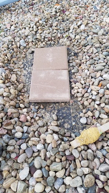 I aligned two concrete pavers that will support my Analemma Viewer. I stretched a line between the two nails marking the celestial North direction. I then aligned the two concrete paves on this alignment string.