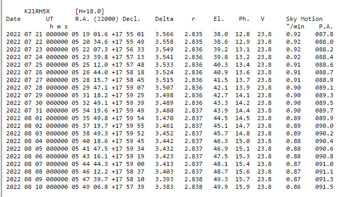Ephmeris from Minor Planet Center