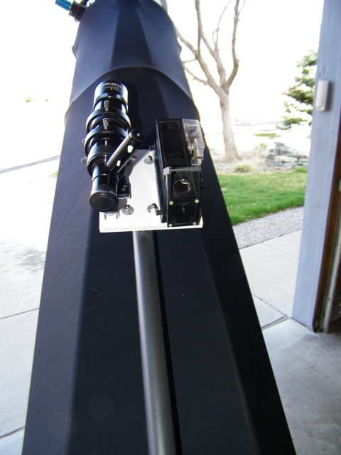This is a picture of my finder scope platform. Many years ago, at a Texas Star Party, I took the pictures below of someone who had made a similar platform for their scope. What I liked about this approach is that the scopes are NOT attached to the upper cage, thus not having to balance that weight at the end of the telescope. I also like the fact that I can use the finder scopes from the ground and not have to crank my neck this way and that to align the scope when it is pointing verticle.