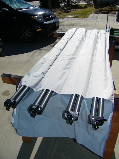 A view of the truss tube case open with the four sets of poles in it.